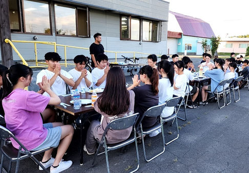 一生懸命稽古をした後は自由時間と皆でご飯。